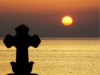 キリシタン墓碑と夕日